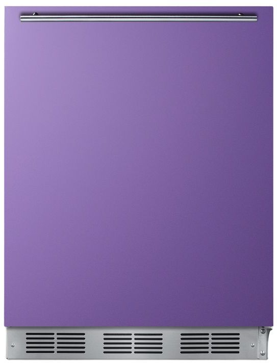 Model BAR631BKP is a 24" wide all-refrigerator with a generous 5.5 cu.ft. capacity. The door finish comes in an attractive lavender purple hue, with a sleek horizontally mounted stainless steel handle and matching stainless steel kickplate to complete the unique look. This unit has a jet black cabinet. It is manufactured in Europe and modified in the United States with domestic steel finishing.